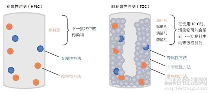 在許多情況下,清潔過程專屬性方法,如總有機(jī)碳(TOC)分析(與產(chǎn)品專屬性方法相比),可以在清潔驗證程序的每個階段非常準(zhǔn)確地描述清潔工藝的總體有效性。關(guān)鍵的一點是,選擇一種或多種方法取決于清潔過程后殘留物的性質(zhì)。如果在經(jīng)過驗證的清潔過程中,活性成分沒有降解或溶解,并且充分了解所有干擾物,那么產(chǎn)品專屬性方法(包括HPLC、UV/Vis或ELISA)可能是合適的。1,2