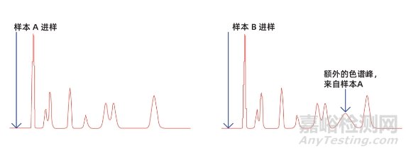 圖 5. 上一次進樣中的高保留峰洗脫造成意外寬峰的示例。