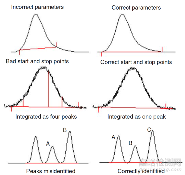 圖 6.各種色譜峰積分問題示例