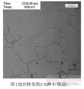 加熱溫度:1050℃、1020℃、1000℃、980℃、950℃、900℃、880℃、870℃、860℃升溫均采用從室溫開始以300℃/min的速率升溫至700℃,然后以100℃/min 的速度升溫至試驗(yàn)溫度并保溫30 min的加熱工藝;降溫則選取等溫冷卻工藝:以120℃/min 的速率降溫至727℃保溫10min→以120/min 的速率降溫至680保溫10 min→以180℃/min 的速率降溫至室溫。
