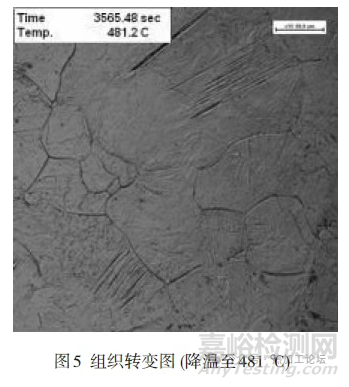 高溫冷卻過程中,組織的變化狀態(tài)圖見高溫實(shí)時組織轉(zhuǎn)變圖1~圖6。