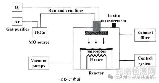 金屬有機源為三乙基鎵( TEGa),氧氣作為反應氣體,利用惰性氣體氬氣作為載氣,通過載氣將實驗所需的金屬有機反應源以氣體的形式傳送至反應室,并與反應室中的氧氣混合, 通過精準調控氣體的比例后最終在高溫的襯底上發(fā)生熱分解反應形成高質量的外延薄膜。
