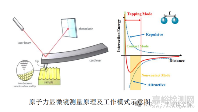 AFM工作原理主要為應用探針與待測樣品表面原子充分接觸,并通過分析探針與表面原子之間的原子力變化進行成像,一般分辨率為納米級別。
