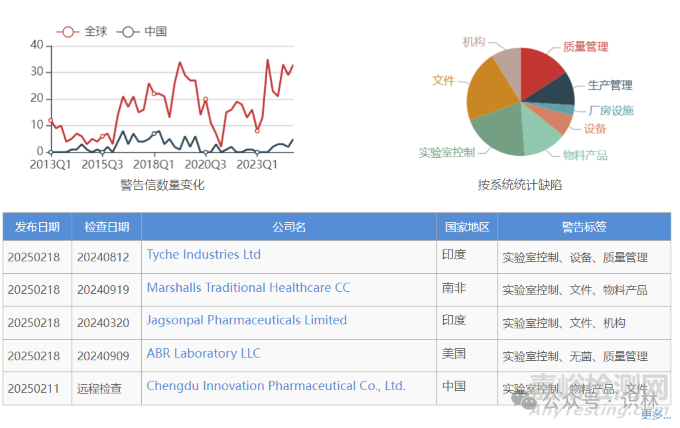 在2024財年發(fā)布的基于檢查的警告信中,F(xiàn)DA在37封中都提到了對 DEG 或 EG 污染的具體擔憂,并建議閱讀《甘油、丙二醇、麥芽糖醇溶液、氫化淀粉水解物、山梨醇溶液和其它高風險藥物成分的二甘醇和乙二醇的檢測即時生效的行業(yè)指南》,以幫助在生產(chǎn)含有 DEG 或 EG 污染高風險成分的藥物時滿足 cGMP 要求。