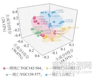 Fig. 1 PCA principal component score plot of peach kernel samples