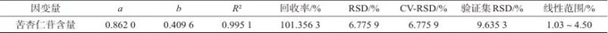 表5 桃仁樣品RF回歸方程及統(tǒng)計(jì)結(jié)果