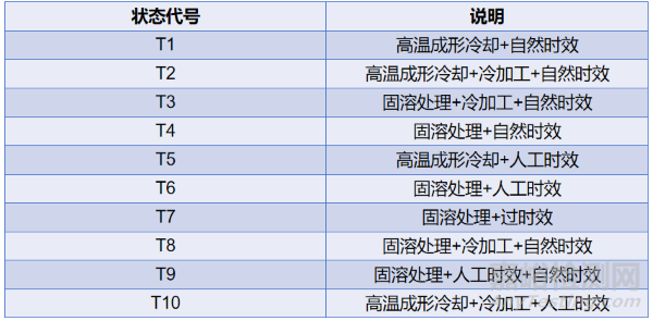 2)通過(guò)析出強(qiáng)化的時(shí)效硬化鋁合金,采用狀態(tài)代號(hào)“T”表明合金所處熱處理狀態(tài)。