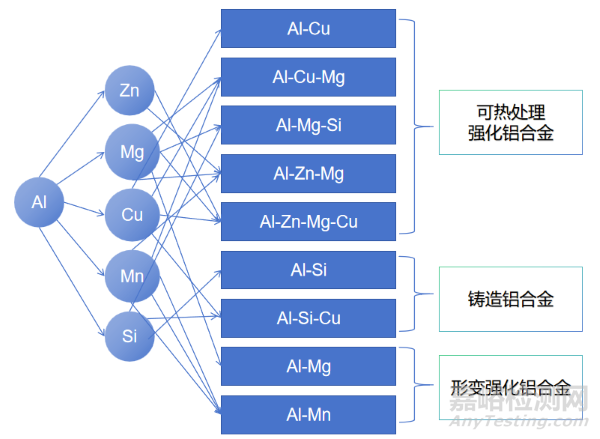 圖1 按鋁合金中的主加合金元素對(duì)鋁合金分類