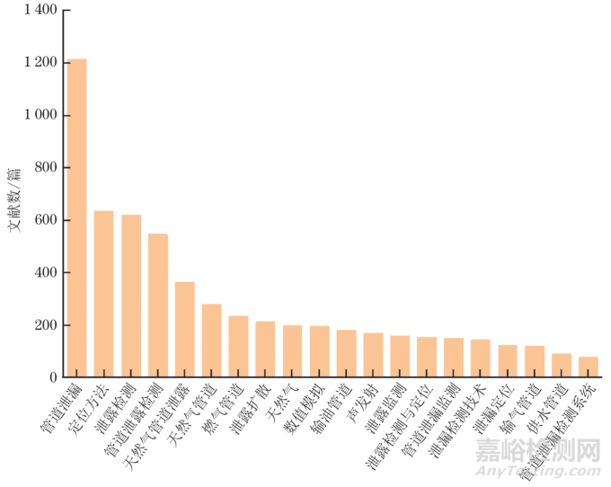 圖1 關(guān)于管道泄漏檢測以不同關(guān)鍵詞發(fā)表的文獻(xiàn)數(shù)量