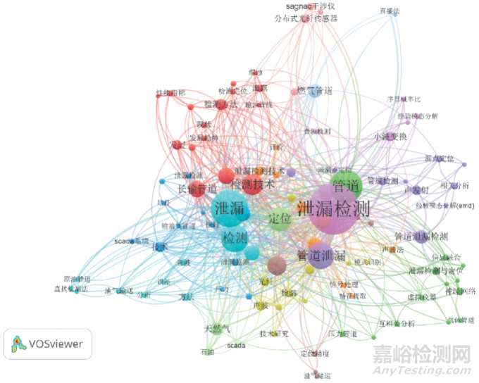 圖3 基于VOSviewer的管道泄漏檢測技術(shù)關(guān)鍵詞氣泡云圖