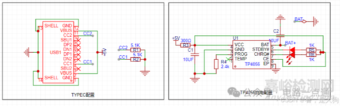 使用了typec進行5v供電,沒有使用temp引腳,BAT引腳引出了BAT+信號,到pcb上畫焊盤處理連接電池正極。