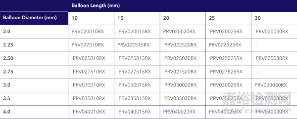 Prevail™ 紫杉醇涂層PTCA球囊導(dǎo)管為復(fù)雜冠狀動(dòng)脈病變的治療提供了可靠的解決方案,助力醫(yī)生在經(jīng)皮冠狀動(dòng)脈介入治療中實(shí)現(xiàn)更精準(zhǔn)、更有效的操作。具體產(chǎn)品型號(hào)如下圖: