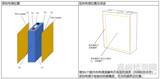 熱電偶位置:增加了測量電芯表面溫度的熱電偶位置;