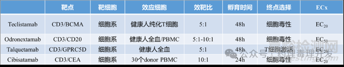 可以從六個變量著手分析:1)靶細(xì)胞來源和靶點表達(dá)水平;2)效應(yīng)細(xì)胞來源;3)效靶比(E:T ratio);4)孵育時間;5)試驗終點選擇;6)ECx.
