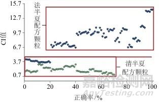 Tab. 3 CI value range of Pinellia formula granules from different manufacturers