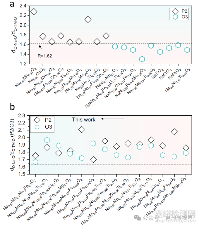 (2) 高R值穩(wěn)定機(jī)制解析:高R值使O3結(jié)構(gòu)處于相變預(yù)備態(tài),促進(jìn)快速平滑的O3-P3相變,降低晶格參數(shù)瞬時(shí)變化速率,減少應(yīng)力累積;同時(shí)拉伸鈉層間隙四面體結(jié)構(gòu),阻礙陽(yáng)離子遷移。