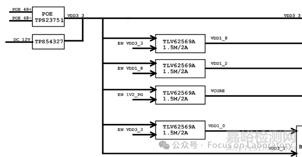 電源設(shè)計(jì)缺陷:PoE降壓后的3.3V與外部DC 12V轉(zhuǎn)換后的3.3V直接并聯(lián),未使用任何隔離元件(如二極管、MOSFET)。