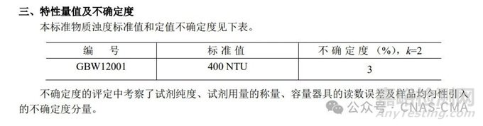 某實驗室現(xiàn)場評審,實驗室用水中濁度標準物質(zhì)做質(zhì)控,濁度的標準值是400,相對擴展不確定度是3%