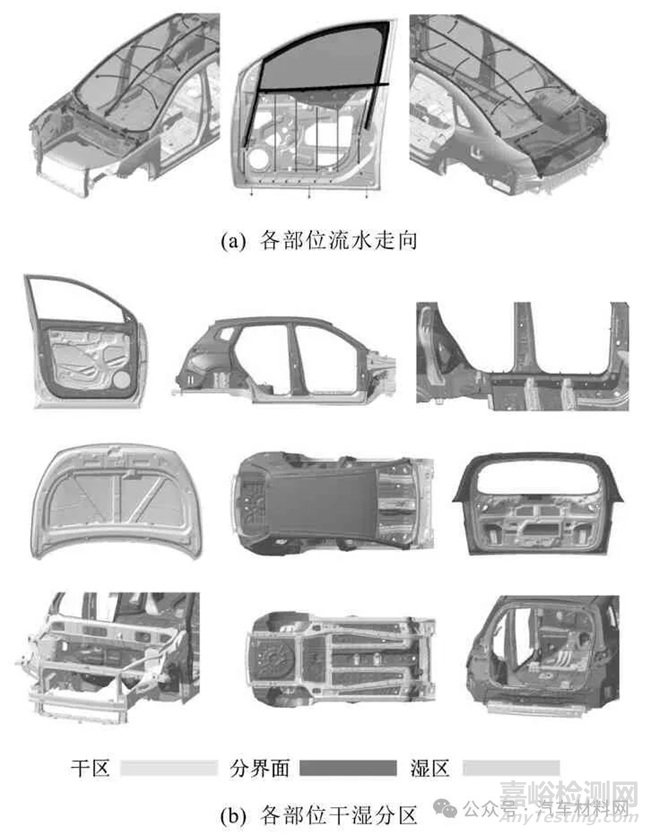 系統(tǒng)及零部件在設(shè)計過程中應(yīng)充分考慮腐蝕屬性,尤其是車身、底盤與動力系統(tǒng)等承載結(jié)構(gòu)零件。系統(tǒng)與部件級防腐設(shè)計遵循以下原則:1)設(shè)計預(yù)留足夠的“腐蝕余量”。產(chǎn)品按照最嚴苛的腐蝕環(huán)境和最惡劣的工況條件進行腐蝕性能設(shè)計,充分考慮高溫、石擊與鹽水等極端工況,并進行必要的防護設(shè)計,以降低腐蝕風險。2)優(yōu)異的防腐結(jié)構(gòu)設(shè)計。采取避免搭接設(shè)計產(chǎn)生縫隙,減少部件承受拉應(yīng)力且避免應(yīng)力集中,避免產(chǎn)生封閉型腔等有效防腐設(shè)計措施。3)合適的密封防護設(shè)計。對于車身涉水區(qū)域合理采用點焊密封膠、焊縫密封膠與空腔蠟等密封防護措施,最大程度地對零件進行防護[7]。