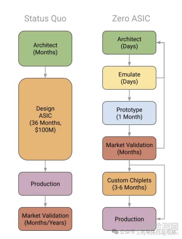如圖所說,Zero ASIC 正在構(gòu)建世界上第一個可組合芯片平臺,該平臺能夠從現(xiàn)成的芯片目錄中在數(shù)小時內(nèi)組裝數(shù)十億個獨特的硅系統(tǒng),擁有以下特征: