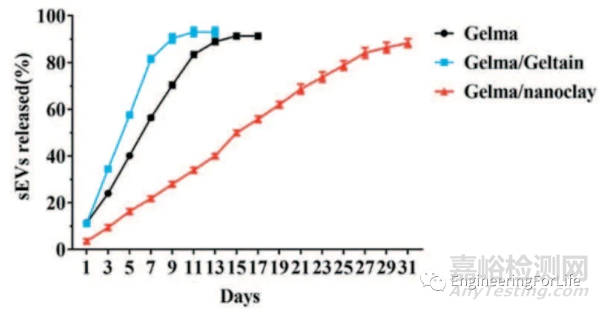 圖4 BCA法測試GelMA水凝膠中細(xì)胞外囊泡(sEVs)的釋放曲線[5]