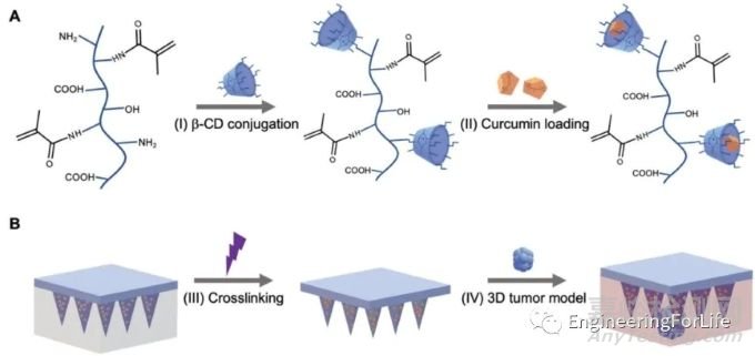 1. Advanced Healthcare Materials:GelMA-β-環(huán)糊精基微針貼片用于遞送疏水藥物