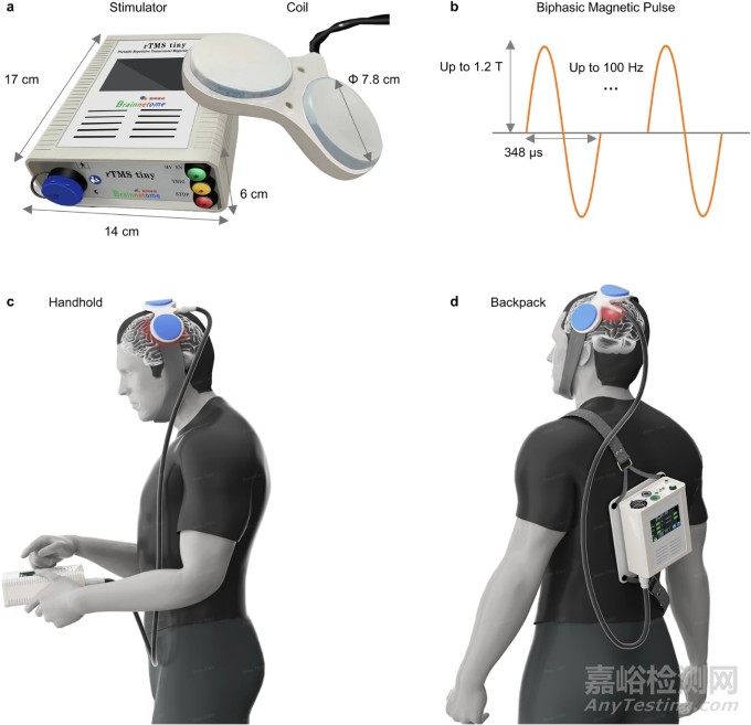 ▲電池供電可穿戴重復(fù)經(jīng)顱磁刺激設(shè)備(rTMS)。來源:自動化所
