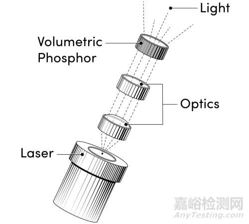 For these reasons, the overall efficiency of the extant designs remains comparatively low, even when LD-based devices (the most efficient design) are analyzed. Furthermore, prior designs that use an LD to provide the primary light input completely saturate the remote phosphor elements. This over saturation can lead to the inadvertent emission of coherent laser light, which can cause damage to sensitive electronics, materials, eyes, and skin. |