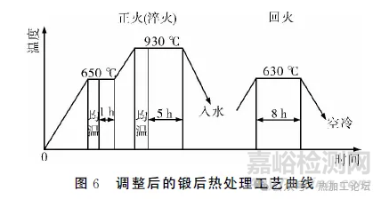 鍛后熱處理采用正火(淬火)+高溫回火工藝,熱處理工藝曲線見圖6。