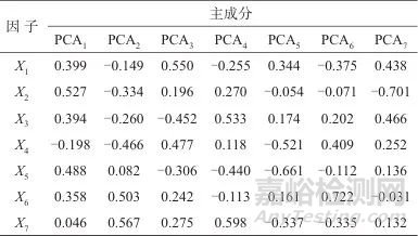 F3=0.550X1+0.196X2-0.452X3+0.477X4-0.306X5+0.242X6+0.275 X7。