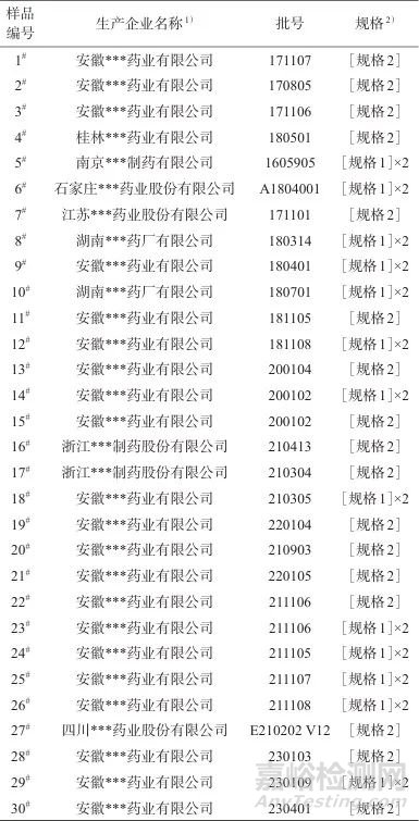 銀杏葉片樣品:薄膜衣,共30批次,編號為1#~30#,具體信息見表1。