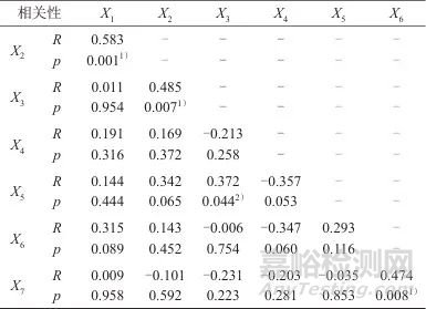 注:1)表示在0.01水平(雙尾),極顯著相關(guān)性,p<0.01;2)表示在0.05水平(雙尾),顯著相關(guān)性,p<0.05。