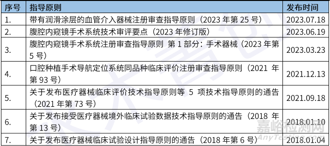 通過在醫(yī)療器械技術(shù)審評中心以“手術(shù)系統(tǒng)”、“控制系統(tǒng)”、“導(dǎo)航定位”、“導(dǎo)航系統(tǒng)”、“介入器械”作為關(guān)鍵詞進(jìn)行檢索,匯總了有關(guān)手術(shù)機(jī)器人相關(guān)的指導(dǎo)原則以及通用性指導(dǎo)原則。