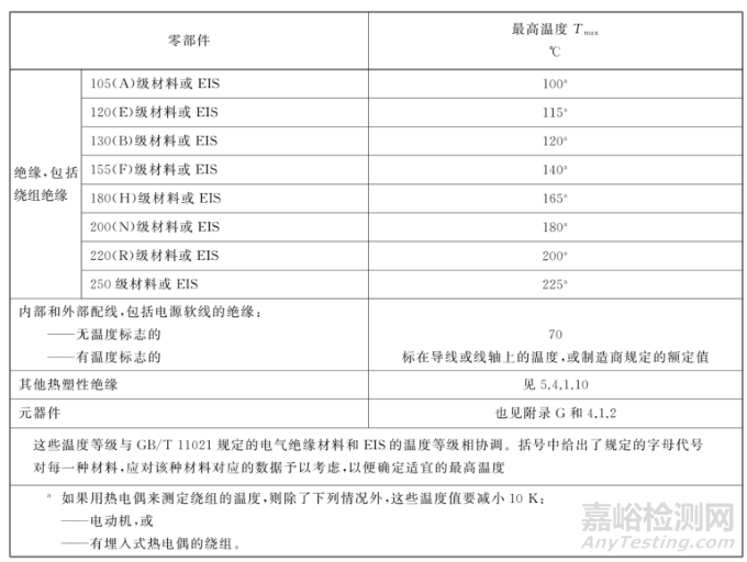 電氣絕緣材料或 EIS的溫度不得超過(guò)表1的限值。