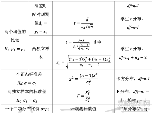 下圖為常見的樣品比較假設(shè)檢驗的統(tǒng)計量。其中等效性檢驗,即通過雙單側(cè)檢驗(TOST)判斷兩個方法的均值是否等效,在CMC研發(fā)過程中非常有用。