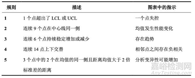 常見的統(tǒng)計方法中,有單值控制圖:過程平均值±3×過程標準差,有檢測失控結(jié)果的Nelson規(guī)則。