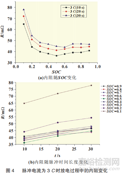 2.1 內(nèi)阻隨SOC、脈沖時間的變化