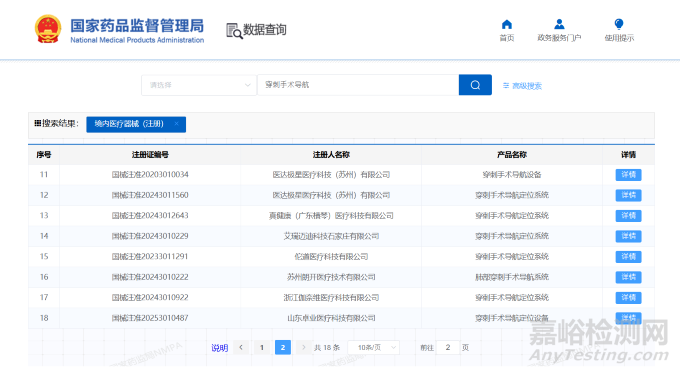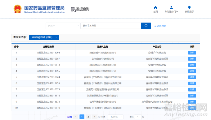 目前,僅“穿刺手術(shù)導(dǎo)航系統(tǒng)/設(shè)備”這一單一類目在藥監(jiān)局官網(wǎng)已審批通過的就有18條相關(guān)產(chǎn)品,其中多數(shù)為近兩年審批通過。
