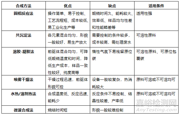 表1 鈉離子電池正極材料常見的合成方法及其特點(diǎn)