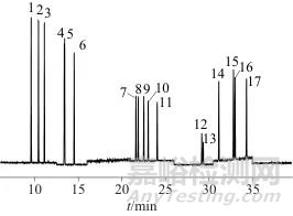 圖10 17種有機(jī)氯農(nóng)藥和氯苯類化合物的標(biāo)準(zhǔn)樣品色譜圖