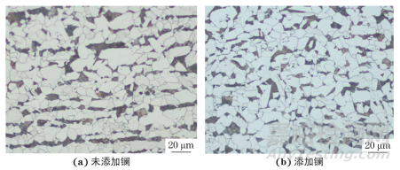 圖 1 未添加和添加鑭試驗鋼的顯微組織