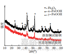 圖6 不同試驗鋼腐蝕產(chǎn)物的XRD譜