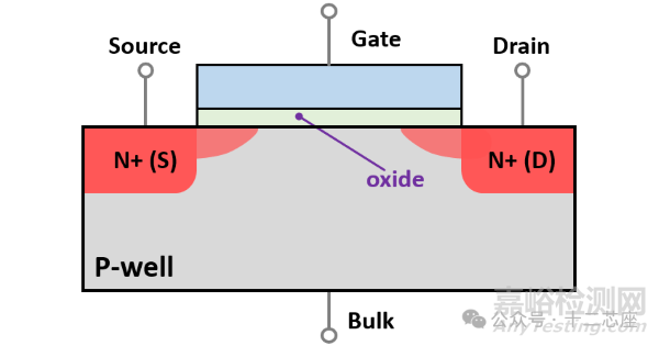 氧化膜還可以用于阻止電路間電流(電子)的流動(dòng)。MOSFET結(jié)構(gòu)的核心就是柵極(Gate)。MOSFET與BJT晶體管不同,柵極不與溝道(S與D的中間部分)直接接觸,只是“間接”發(fā)揮作用。這也是MOSFET不工作時(shí),功耗低的原因。MOSFET通過氧化膜隔絕柵極與電流溝道,這種氧化膜被稱為柵氧化層(Gate Oxide)。
