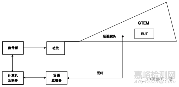 ②外接信號(hào)源,通過(guò)功率放大器,在 GTEM小室內(nèi)建立均勻電場(chǎng);