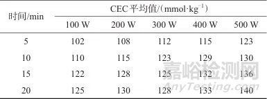 表1 不同的超聲時(shí)間和超聲功率對(duì)應(yīng)樣品的CEC測(cè)定值