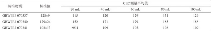 表2 不同用量的EDTA-乙酸銨交換液對(duì)應(yīng)樣品的CEC測(cè)定值
