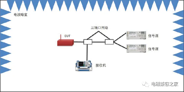 測(cè)試設(shè)備:信號(hào)發(fā)生器、三端口網(wǎng)絡(luò)、接收機(jī)、輸出監(jiān)測(cè)器(測(cè)試接收機(jī))。