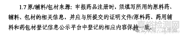 2020年7月3日,國家藥監(jiān)局藥審中心關(guān)于發(fā)布《化學(xué)藥品注冊(cè)受理審查指南(試行)》的通告(2020年第10號(hào))中指出:申報(bào)藥品注冊(cè)時(shí),須填寫所用的原料藥輔料、包材的相關(guān)信息,并應(yīng)與所提交的證明文件/原料藥、藥用輔料和藥包材登記信息公示平臺(tái)中登記的相應(yīng)內(nèi)容保持一致。
