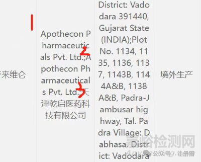 申請(qǐng)中要求寫生產(chǎn)企業(yè)名稱。但是CDE原輔包登記平臺(tái)上,有很多原料藥的企業(yè)名稱信息會(huì)顯示多個(gè)(2個(gè)或者3個(gè)),此時(shí),需要注意信息的準(zhǔn)確性。以下面某個(gè)案例為例,如下圖所示: