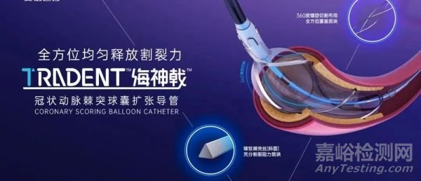 棘突球囊又稱為嵌入式球囊,主要由球囊和附在球囊表面的三條棘突棱組成。棘突球囊表面均勻間隔置有三條棘突棱,球囊充氣時(shí)棱線繃緊嵌入病變斑塊,最大程度避免了球囊滑脫,從而獲得更優(yōu)異的擴(kuò)張效果;球囊放氣后棱線松弛,進(jìn)而安全撤出冠脈血管,降低了微刀片對(duì)正常血管壁劃傷的風(fēng)險(xiǎn)。